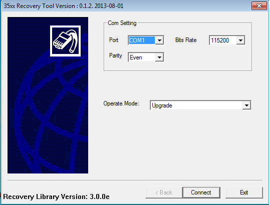 4. Escolha a porta COM livre do PC, Clique em Conectar, e ligue a fonte de energia do deco